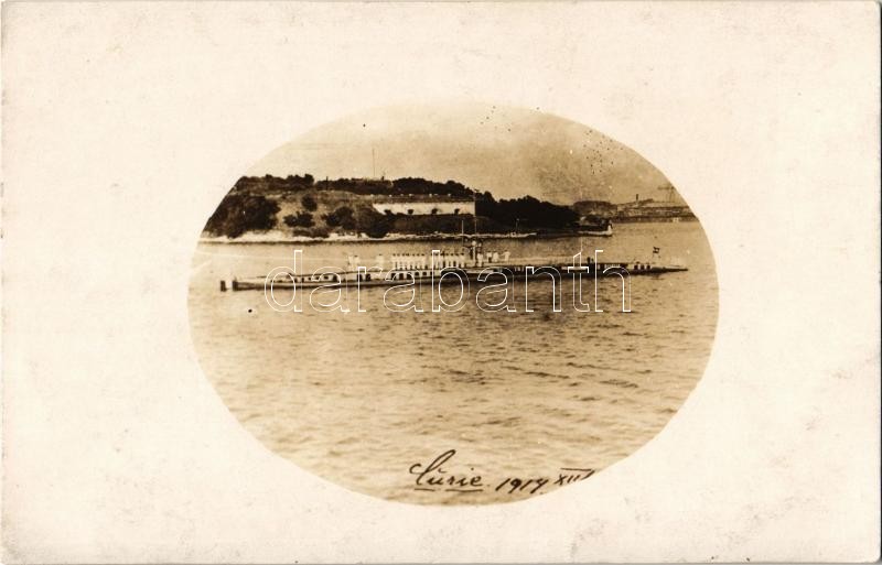 1914 Osztrák-magyar zászló alatt U 14-es tengeralattjáró (ex Curie Q 87) / K.u.K. Kriegsmarine Unterseeboot U-14 / WWI Captured French submarine Curie now as U-14 Austro-Hungarian Navy submarine. photo