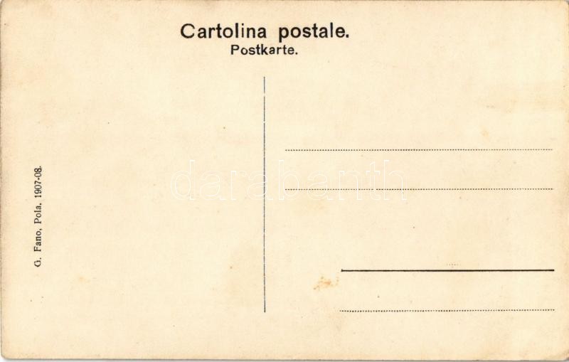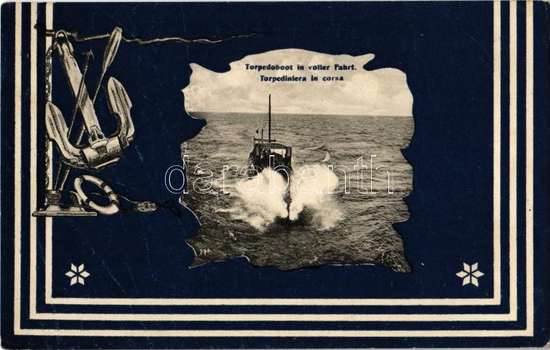 Osztrák-magyar haditengerészet torpedónaszádja teljes gőzzel előre / K.u.K. Kriegsmarine Torpedoboot in voller Fahrt / Austro-Hungarian Navy torpedo boat in full steam ahead. G. Fano Pola 1907-08. Art Nouveau