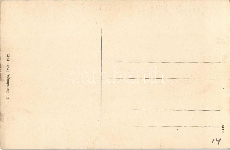 Pola, K.u.K. Kriegsmarine Schiffe in Reserve / Navi in Riserva / Osztrák-Magyar Haditengerészet csatahajói Polában a tartalék kikötőben / Austro-Hungarian Navy battleships in the reserve dock near the Pula shipyard. G. Costalunga Pola 1912