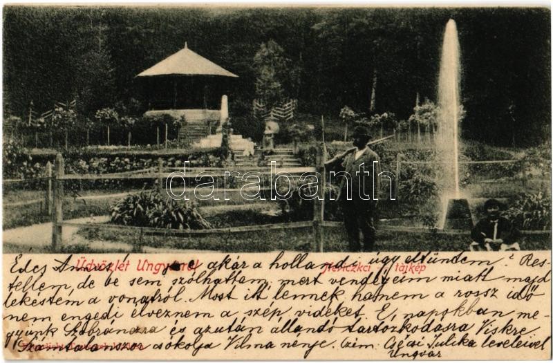 Leírás: 1903 Nevicke, Nevytske, Nyevicke (Ungvár, Uzshorod, Uzhorod); kert, vadász puskával. Feuerlicht Testvérek kiadása / park, hunter with gun