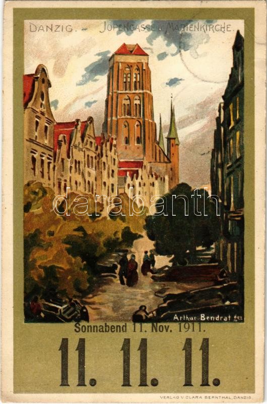 1911 Gdansk, Danzig; Jopengasse, Marienkirche. 11.11.11 Sonnabend / st... https://www.darabanth.com/hu/33-Nagyaukcio/33.1/Kepeslapok/Lengyelorszag~13944/1911-Gdansk-Danzig-Jopengasse-Marienkirche-111111-Sonnabend-street-church-Clara-Bernthal-l~II2142688
