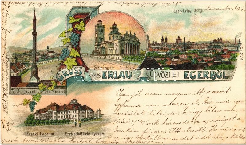 1898 Eger, Erlau; Török mecset, érseki lyceum, székesegyház. Beznák Gy... https://www.darabanth.com/hu/33-Nagyaukcio/33.1/Kepeslapok/Magyarorszag~13900/1898-Eger-Erlau-Torok-mecset-erseki-lyceum-szekesegyhaz-Beznak-Gyula-kiadasa-Art-Nouvea~II2125045