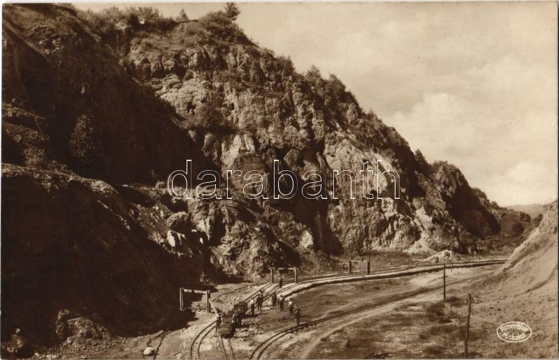 Leírás: 1937 Rudabánya, Rudóbánya; Barnavasérc bányászat "Vilmosbánya" nevű része, iparvasút. Rosenblatt művészi fényképészete
