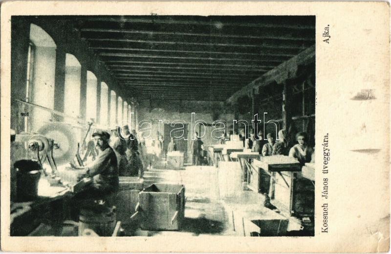 Ajka, Kossuch János üveggyára, belső munkásokkal https://www.darabanth.com/hu/33-Nagyaukcio/33.1/Kepeslapok/Magyarorszag~13900/Ajka-Kossuch-Janos-uveggyara-belso-munkasokkal~II2141193