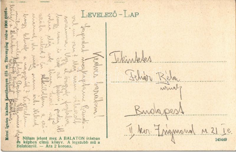Keszthely, Balatonfürdő, vitorlás. Mérei Ignác kiadása 1908. 6886a. https://www.darabanth.com/hu/33-Nagyaukcio/33.1/Kepeslapok/Magyarorszag~13900/Keszthely-Balatonfurdo-vitorlas-Merei-Ignac-kiadasa-1908-6886a~II2133563