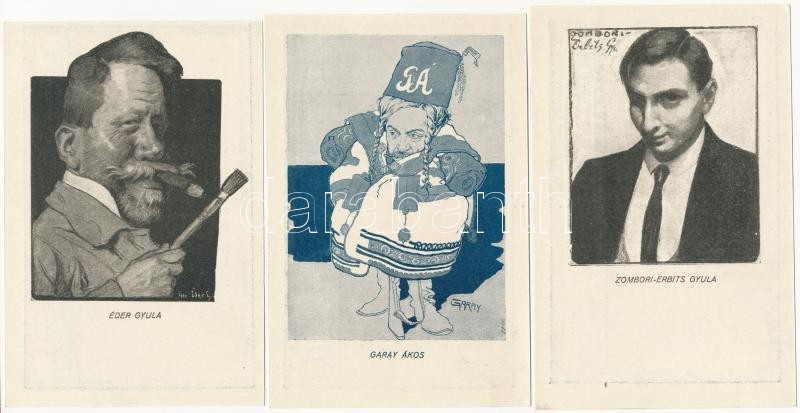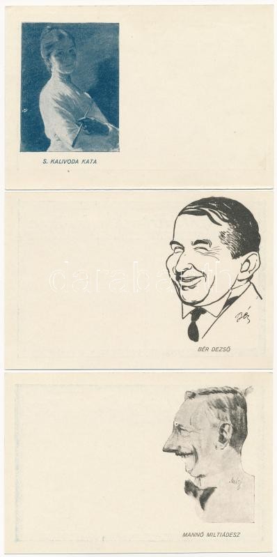 6 db RÉGI használatlan magyar motívum képeslap kiváló minőségben: Kakas Márton Levelezőlap, portrék (Zombori, Garay, Éder, Bér) / 6 pre-1945 unused Hungarian motive postcards in excellent condition: portraits of famous people