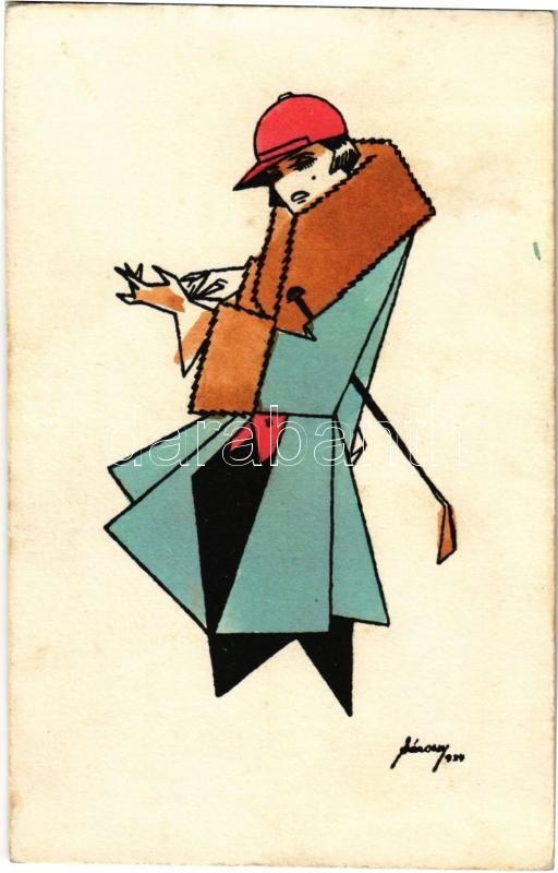 Leírás: A Magyar Művészeti Vállalat kiadása, Pallas nyomda / Hungarian fashion art postcard s: Sárossy