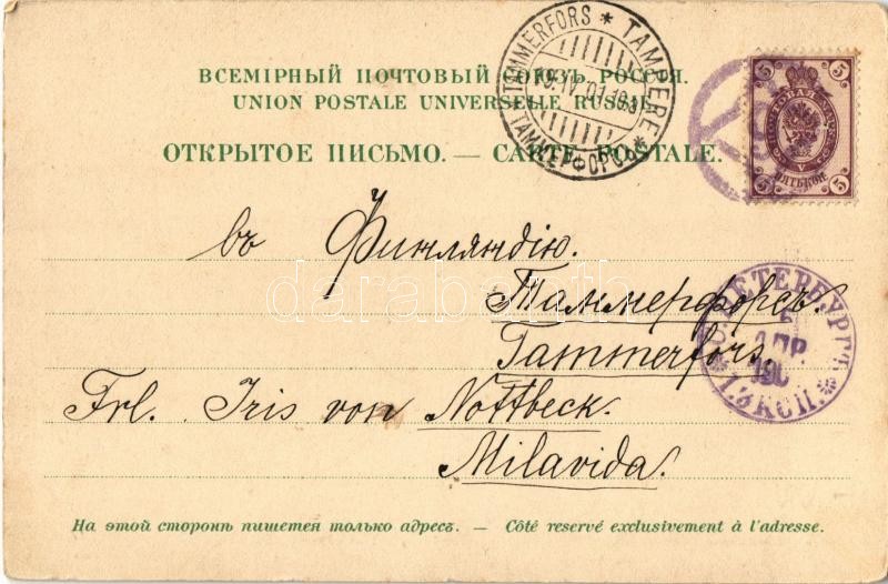 1901 Saint Petersburg, St. Petersbourg; La bourse, Monument Pierre le Grand, Cathedrale St. Isaac. Granbergs Konstindustri Aktiebolag, Stockholm / stock exchange, Peter the Great Statue, cathedral. Art Nouveau, floral, litho (EK)