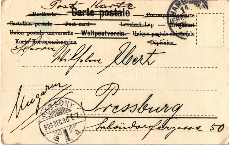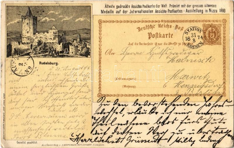 1903 Alteste gedruckte Ansichts Postkarte der Welt auf 1874. Prämiirt mit der grossen silbernen Medaille auf der Internationalen Ansichts-Postkarten Ausstellung in Nizza 1899 / Oldest printed postcard in the world from 1874. Awarded with the big silver medal at the International Postcard Exhibition in Nizza in 1899 (EK)