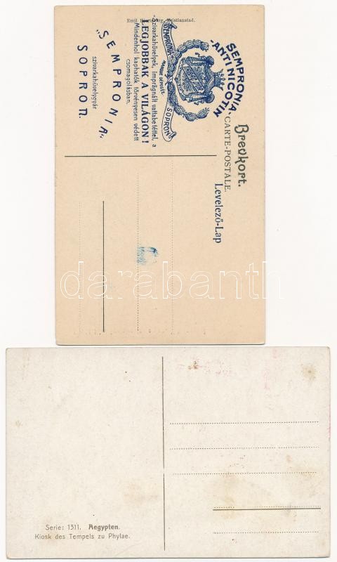 Sopron, Sempronia szivarkahüvelygyár - 2 db régi reklám motívum képeslap / 2 pre-1945 advertising motive postcards of a Hungarian cigarette case factory