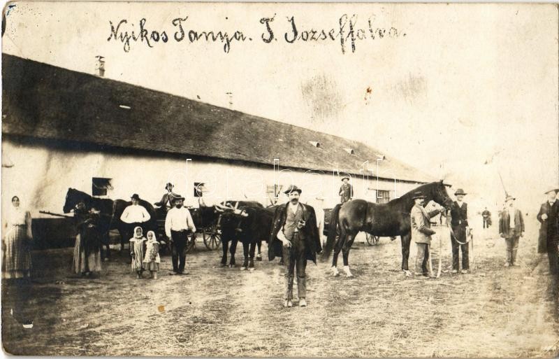 Leírás: Józseffalva, Torontáljózseffalva, Obilicevo, Josefovo (Törökkanizsa, Nova Kanjiza, Novi Knezevac); Nyikos tanya, lovak / farm ranch, horses. photo (EK)