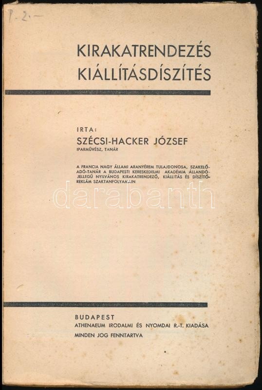 Szécsi-Hacker József: Kirakatrendezés és kiállításrendezés. Bp.,(1936)... https://www.darabanth.com/hu/33-Nagyaukcio/33.1/Konyvek/Konyvek-Epiteszet-muveszet~13882/Szecsi-Hacker-Jozsef-Kirakatrendezes-es-kiallitasrendezes-Bp-1936-Athenaeum-288-p-Ki~II2107401