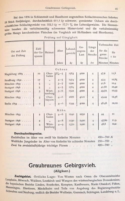 Deutsche Tierrassen. Berlin, 1912., Deutschen Landwirtschafts-Gesellschaft, 8+93+3 p.+53 (fekete-fehér fotókkal) t. Német nyelven. Kiadói aranyozott egészvászon-kötés, kopott, foltos borítóval./ In German language. Gilt-linen-binding, with worn and spotty cover.