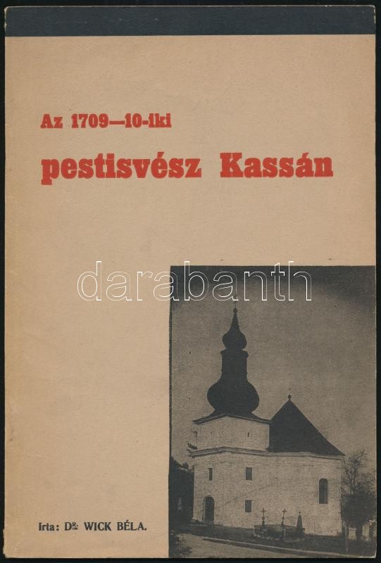 Dr. Wick Béla: Az 1709-10-iki pestisvész Kassán. Kosice (Kassa), 1934, Szent Erzsébet Nyomda. Kiadói papírkötés, jó állapotban, fotókkal illusztrált, a városi hatóság összes tagjainak 1710-diki névsorával, jó állapotban./ Wick, Béla: The 1709-1710 plague disease in Košice. Košice/Kassa, 1934, Saint Elisabeth Press Office. In Hungarian language, with illustration, with list of the city officers in 1710. Paperbinding, in good condition.