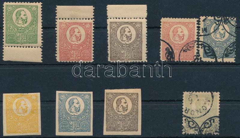 Leírás: 1921 50 éves a kőnyomású bélyeg. 9 db fogazott, vágott emlékbélyeg / 50th anniversary of the lithography issue 9 commemorative stamps