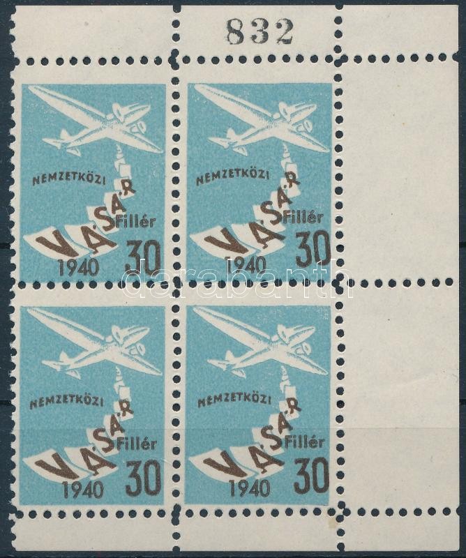 Leírás: 1940 BNV nemzetközi vásár 30f támogatási levélzáró bélyeg négyestömb