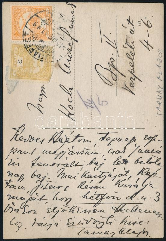 Leírás: 1915 Tarnay Alajos (1870-1933): zeneszerző saját kezű sorai és aláírása, egy őt ábrázoló képeslap hátoldalán, 13x9 cm