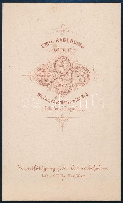 cca 1870 Erzsébet királyné, Wittelsbach Erzsébet 'Sisi' (1837-1898), az Osztrák-Magyar Monarchia uralkodójának, I. Ferenc Józsefnek a felesége, keményhátú fotó Emil Rabending bécsi műterméből, 10x6 cm / Empress Elisabeth of Austria (1837-1898), photo from the studio of Emil Rabending, Vienna (Wien), 10x6 cm
