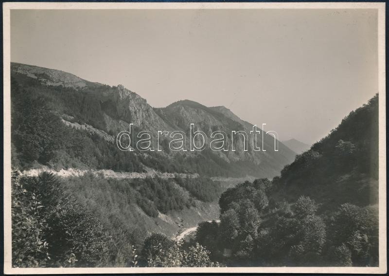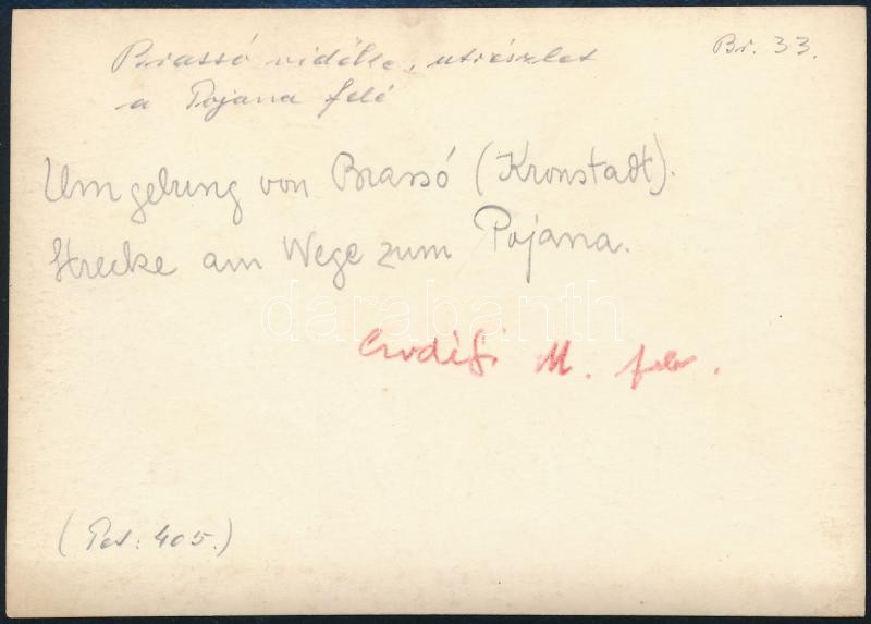 cca 1910 Brassó környéke, útrészlet Pojána felé, Erdélyi Mór felvétele, hátulján feliratozva, 11,5×16 cm / Region of Kronstadt (Brasov), road to Pojana, photograph taken by Mór Erdélyi, with notes on its back, 11,5×16 cm