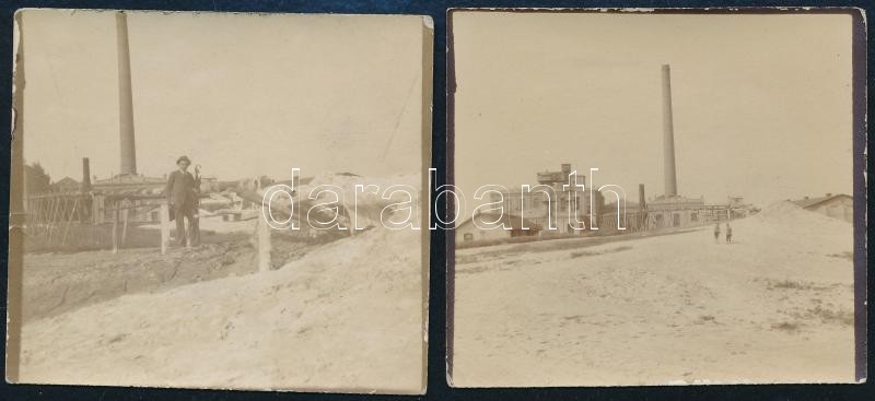 Leírás: cca 1912 Ercsi, cukorgyár, 2 db fotó, 5,5×6 cm
