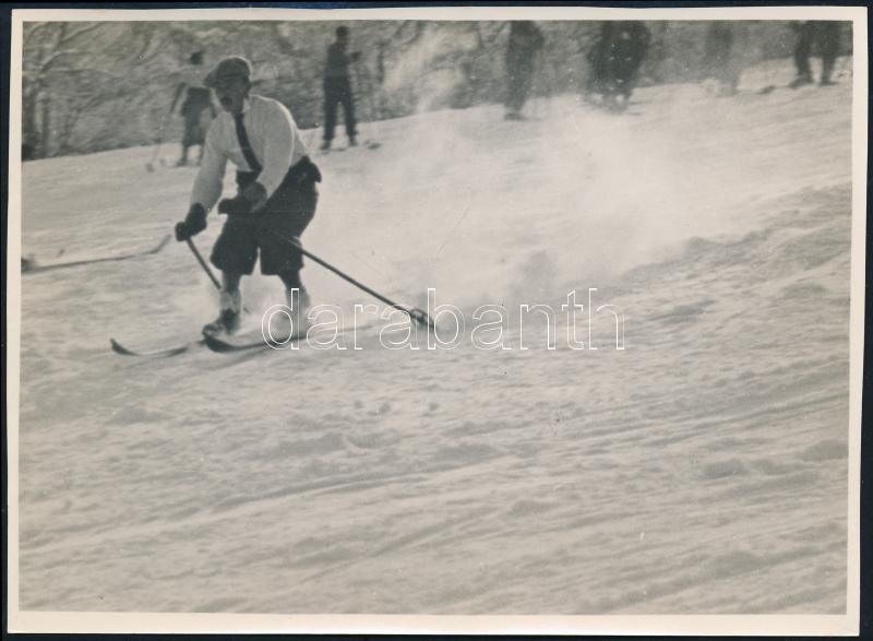 Leírás: cca 1933 Kinszki Imre (1901-1945) budapesti fotóművész hagyatékából, pecséttel jelzett, vintage fotó (Síelő), 11,7x16 cm
