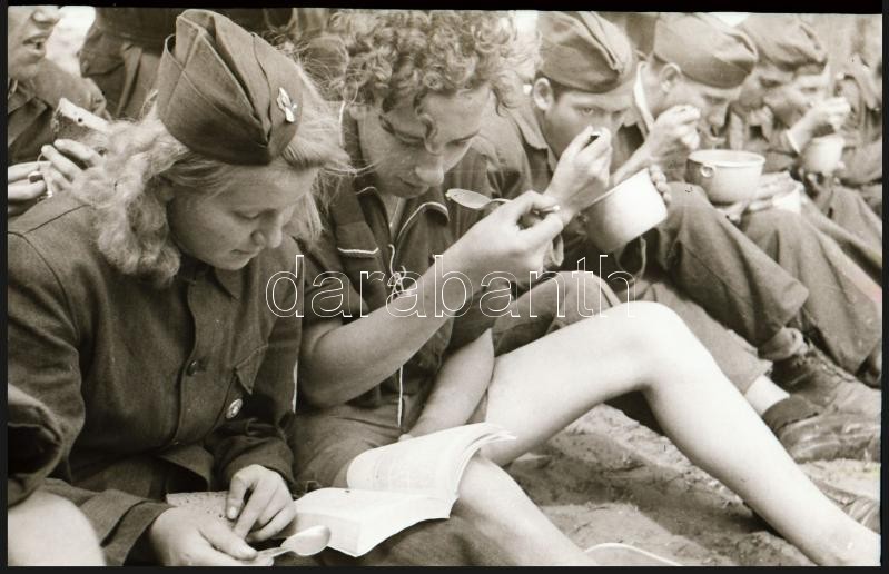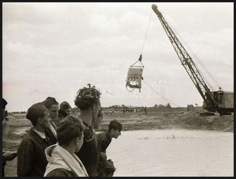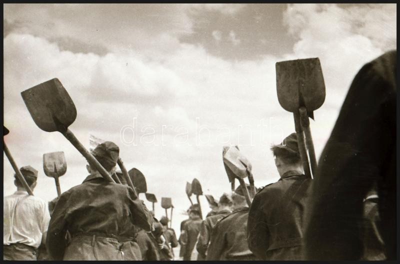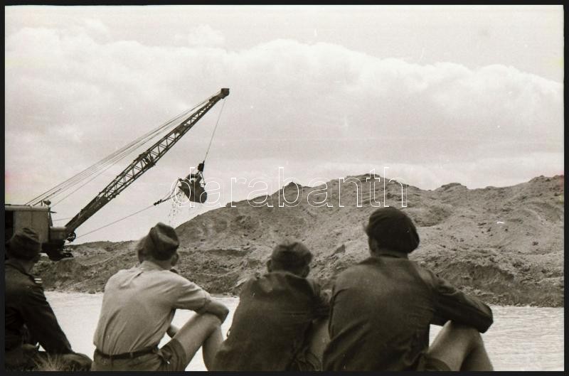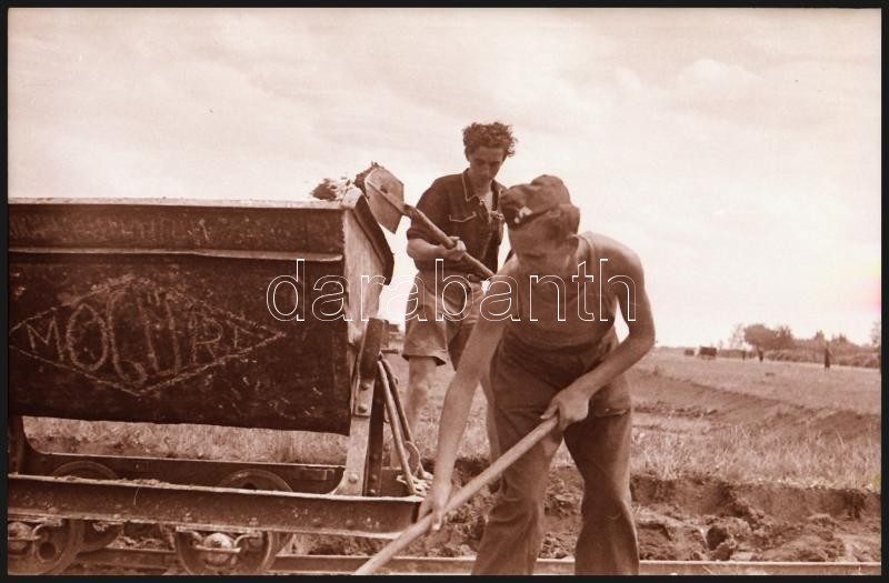 cca 1948 Úttörők Alsónémediben sódert (az építőipar alapanyagát) rakodnak, Kotnyek Antal (1921-1990) budapesti fotóriporter hagyatékából 34 db vintage negatív, 24x36 mm