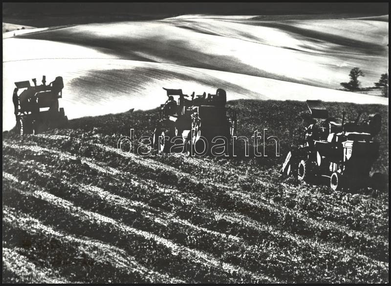 cca 1968 Gebhardt György (1910-1993) budapesti fotóművész hagyatékából feliratozott vintage fotóművészeti alkotás, a magyar fotográfia szocreál korszakából (Borsóaratás), 29x39,5 cm
