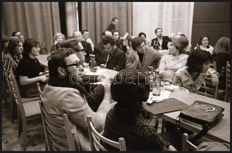 cca 1974 Weöres Sándor (1913-1989) költő és felesége Károlyi Amy egy író-olvasó találkozón, Tiszavölgyi József (1909-?) budapesti fotóriporter hagyatékából 26 db vintage negatív, 24x36 mm