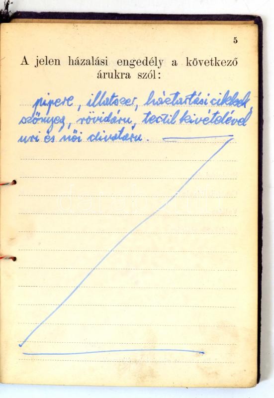 1947 Házalókönyv izraelita vallású egyén számára, bejegyzésekkel https://www.darabanth.com/hu/33-Nagyaukcio/33.1/Mutargy-papirregiseg-egyeb/Judaika~13896/1947-Hazalokonyv-izraelita-vallasu-egyen-szamara-bejegyzesekkel~II2128360