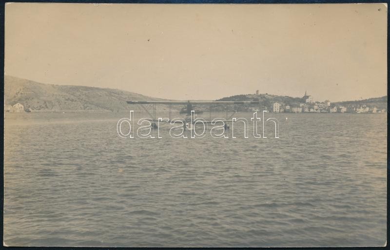 cca 1915 K. u. k. katonai hidroplán az Adriai-tengeren, fotólap, 9×14 cm / cca 1915 K. u. k. military hydroplane on the Adriatic Sea, photo postcard, 9×14 cm