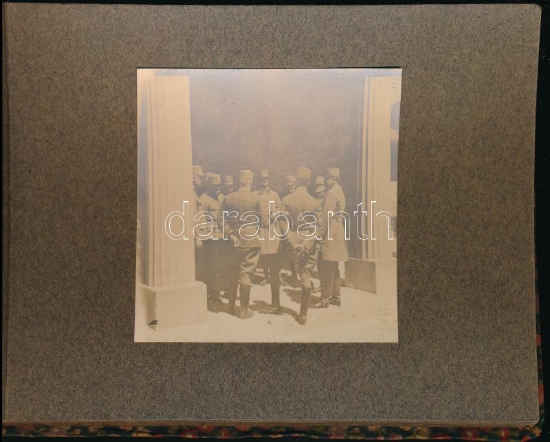 cca 1930-1940 Tövisházy-Ferjentsik Ottokár (1875-1951) vezérezredest ábrázoló portréfotó, és Å‘t valamint a családját ábrázoló további 3 fotó, valamint egy Å‘t ábrázoló újságkivágás, továbbá egy 11 fotót tartalmazó elsÅ‘ világháború körüli fotóalbum, benne azonosÃtatlan szereplÅ‘kkel és helyszÃnekkel, 13x8 cm és 9x6 cm közötti méretben
