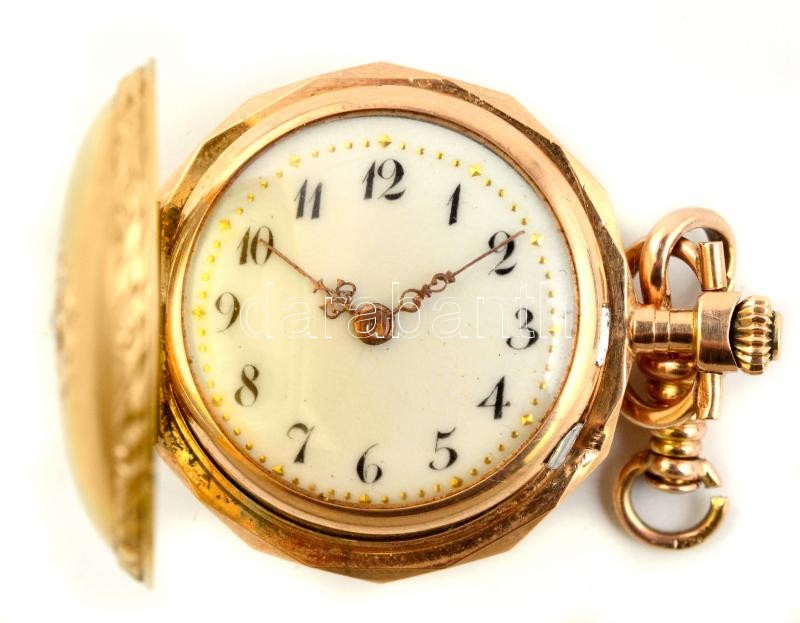 14 K női arany zsebóra. Jelzett, szép, működő állapotban, tokkal. Dupl... https://www.darabanth.com/hu/33-Nagyaukcio/33.1/Mutargy-papirregiseg-egyeb/Nemesfem-Disztargyak-Orak-es-Ekszerek~13892/14-K-noi-arany-zsebora-Jelzett-szep-mukodo-allapotban-tokkal-Dupla-fedeles-Womens-wa~II2139356