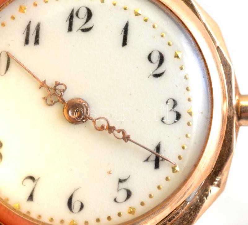 Leírás: 14 K női arany zsebóra. Jelzett, szép, működő állapotban, tokkal. Dupla fedeles. / Women's watch gold pocket watch with case 18,2 g