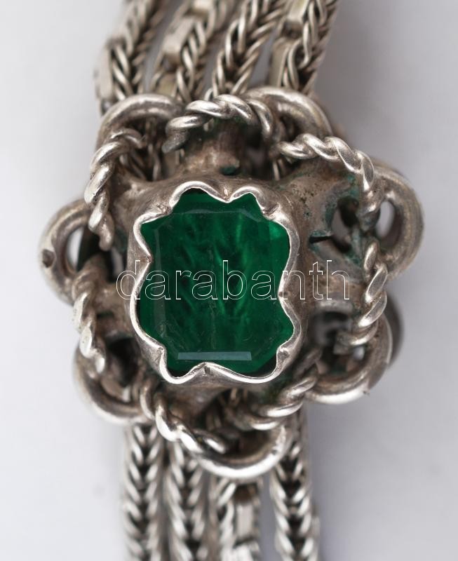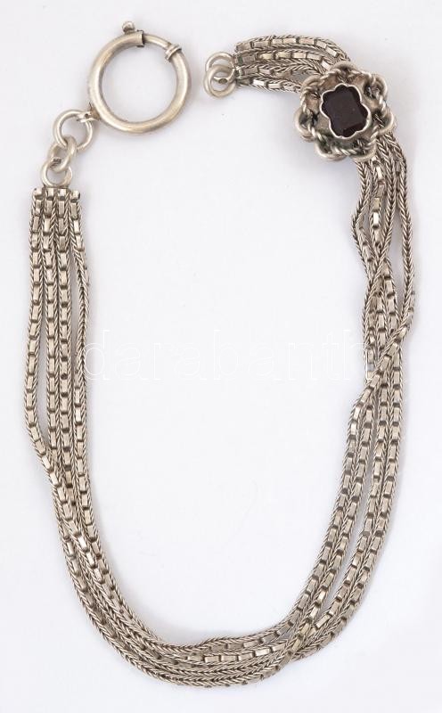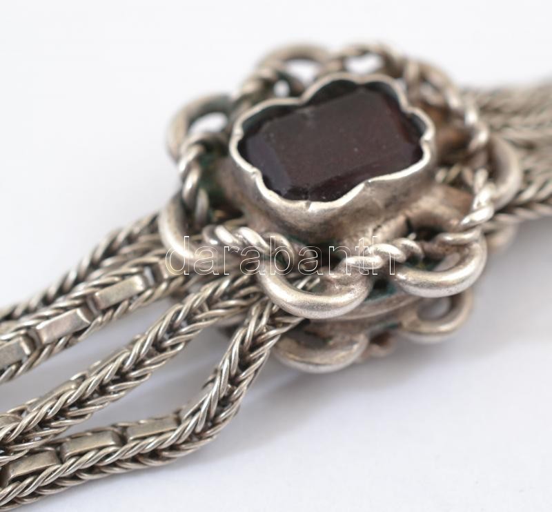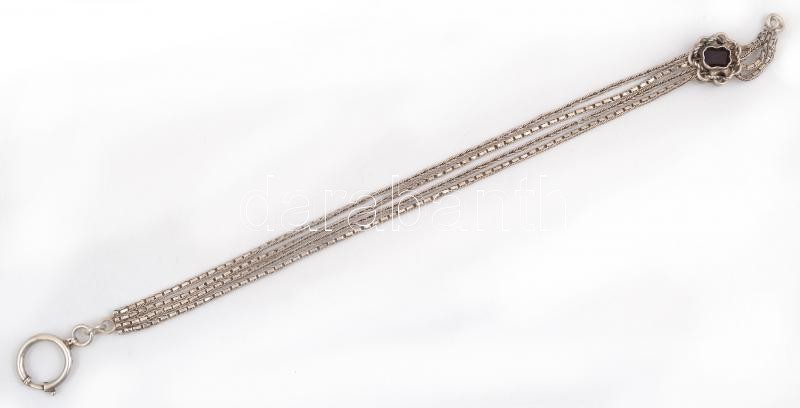Leírás: Ezüst(Ag) óralánc, virágos-köves díszítéssel, jelzett, h: 32 cm, nettó: 32,1 g