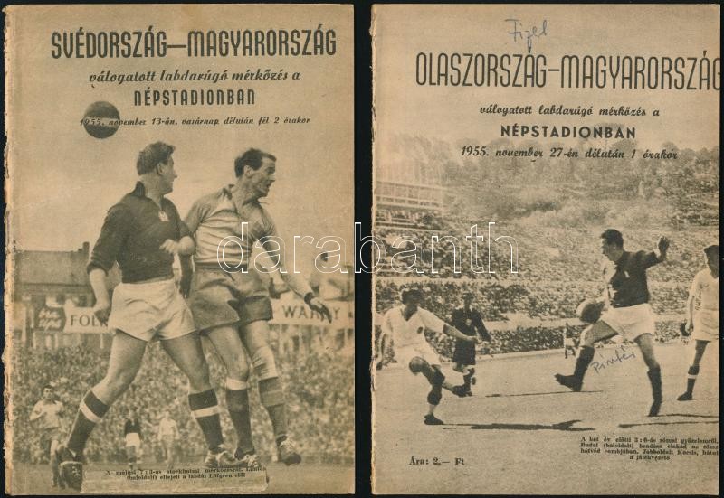 1955 2 db meccsfüzet a magyar landarúgó válogatott mérkőzéseivel. Svédország-Magyarország, Olaszország-Magyarország / 1955 Two match booklets of the Hungarian National Football Team against Italy and Sweden.
