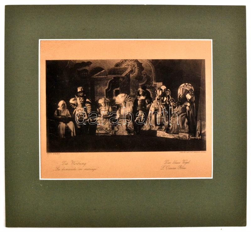 cca 1923 A Berlinben működött orosz avantgard színház, a "Der blaue Vogel" (The Blue Bird) Werbung című előadásáról készült fénynyomat, paszpartuban, 20×24 cm / Cca 1923 Russian avantgarde theater "Der blaue Vogel" (The Blue Bird) in Berlin, photogravure of their play Werbung. 20×24 cm