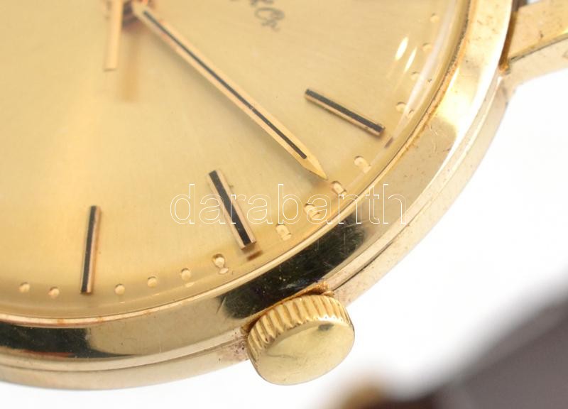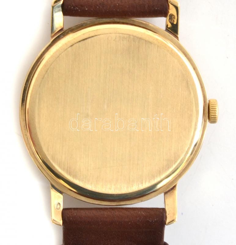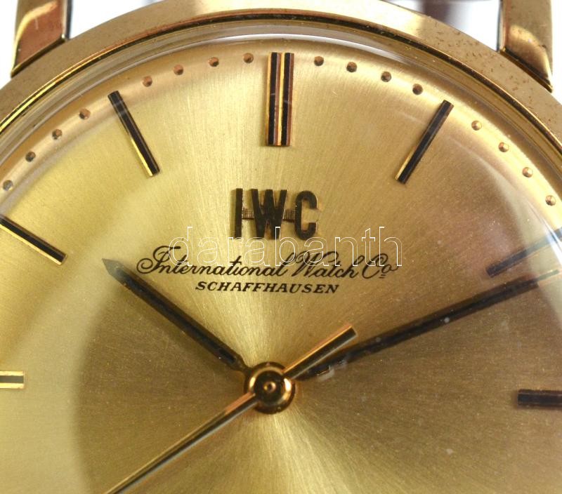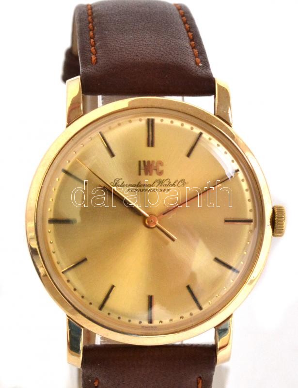 14 K arany IWC kézi felhúzós karóra szép állapotban, igényes bőr szíjjal. d: 32 mm (korona nélkül) / 14K gold IWC watch in good condition, with leather strap