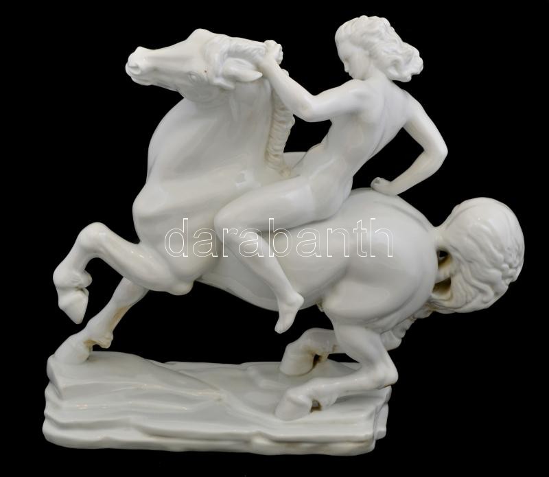 Leírás: Herendi nagy méretű amazon női akt lovon. Fehér mázas, jelzett, kopásokkal. m: 42 cm, h: 49 cm