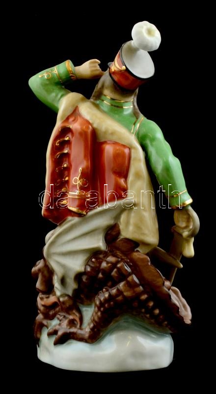 Herendi sárkányölő huszár, kézzel festett, jelzett, hibátlan 22 cm https://www.darabanth.com/hu/33-Nagyaukcio/33.1/Mutargy-papirregiseg-egyeb/Porcelan~13860/Herendi-sarkanyolo-huszar-kezzel-festett-jelzett-hibatlan-22-cm~II2139179