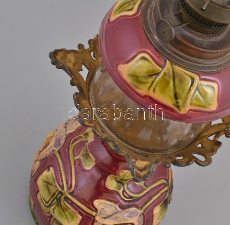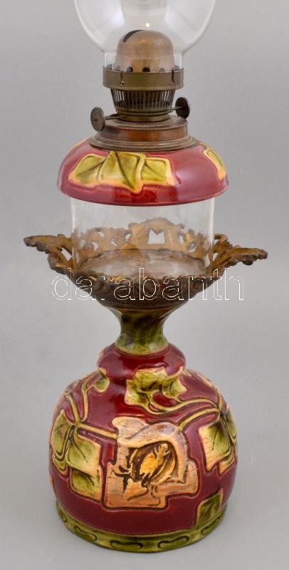 Jelzés nélkül: Fajansz petróleum lámpa. Festett, öntött fém lábbal. Ki... https://www.darabanth.com/hu/33-Nagyaukcio/33.1/Mutargy-papirregiseg-egyeb/Porcelan~13860/Jelzes-nelkul-Fajansz-petroleum-lampa-Festett-ontott-fem-labbal-Kis-kopassal-m-52-cm~II2137492