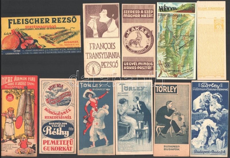 11 db számolócédula: Fleischer Rezső, Herz Ármin, Réthy Béla, Törley, ... https://www.darabanth.com/hu/33-Nagyaukcio/33.1/Mutargy-papirregiseg-egyeb/Reklam~13897/11-db-szamolocedula-Fleischer-Rezso-Herz-Armin-Rethy-Bela-Torley-HEV-Francois~II2137579