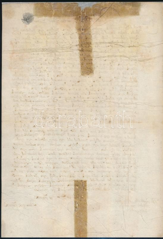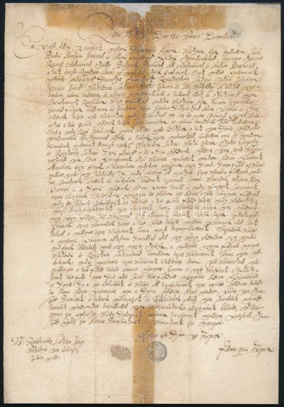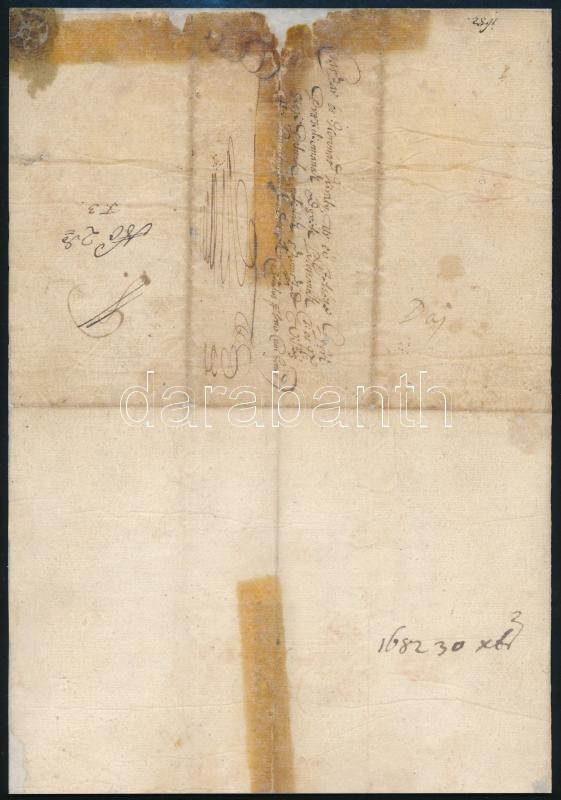 1682 Husszein aga, Adony várának agája magyar nyelvű, pecsétjével ellátott levele a győri káptalannak földügyben. Restaurált / 1682 Hussein aga, aga of the castle in Adony, letter regarding ground to the priest in Győr/Raab, restored.