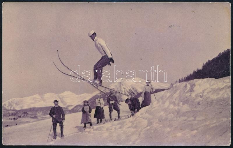 1912 Darányi Ignác (1849-1927) földművelésügyi miniszter saját kézzel írt képeslapja b. Wlassics Gyula (1852-1967) vallás- és közoktatásügy miniszter részére tátralomnici síelésből / Hand written postcard by Ignác Darányi (1849-1927), minister for agriculture to baron Gyula Wlassics (1852-1967), minister for education and religion, from Tatranská Lomnica, where he was skiing