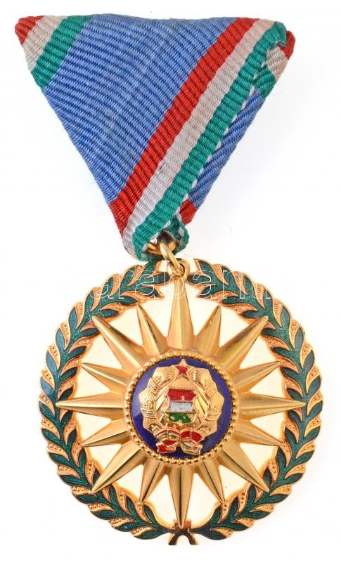 1976. "Szocialista Magyarországért Érdemrend" aranyozott, zománcozott Br kitüntetés mellszalaggal. Az érdemrend jelvényét Csúcs Viktória (1934- ) tervezte. T:1- / Hungary 1976. "Order of Merit for the Socialist Hungary" gilt, enamelled Br decoration on ribbon. The badge of the order designed by Viktória Csúcs (1934- ) C:AU NMK 715.