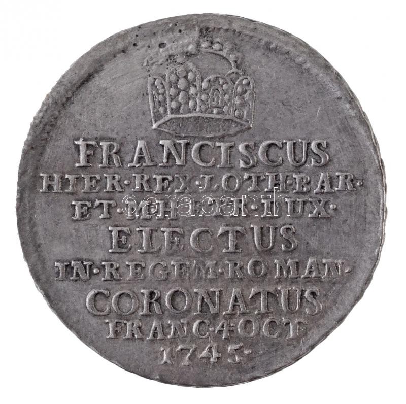 Habsburg Monarchia 1745. "I. Ferenc frankfurti koronázása" Ag zseton. "FRANCISCVS - HIER REX LOTH BAR - ET M H ETR DVX - ELECTVS - IN REGEM ROMAN - CORONATVS - FRANC 4 OCT - 1745 / DEO ET IMPERIO" (3,66g/26mm) T:2- lyuktömött / Habsburg Monarchy 1745. "Coronation of Franz I in Frankfurt" Ag token (3,66g/26mm) C:VF plugged hole