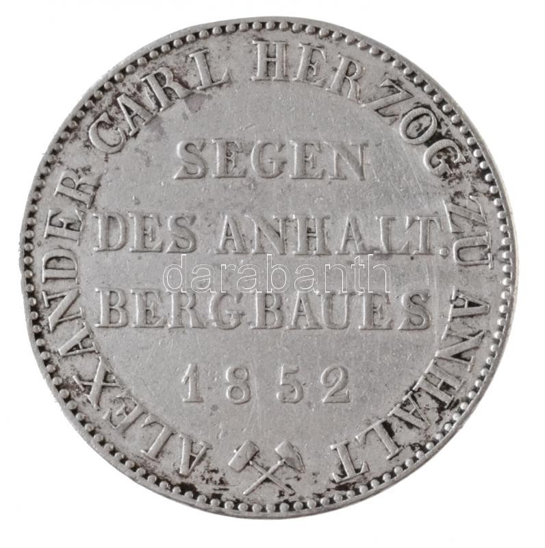Német Államok / Anhalt-Bernburg 1852A Tallér Ag "Sándor Károly" Berlin (21,96g) T:2,2- ph. / German States / Anhalt-Bernburg 1852A Thaler Ag "Alexander Carl" Berlin (21,96g) C:XF,VF edge error