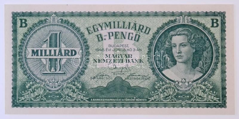 1946. 1.000.000.000BP T:I- jobb felül sarokhajlás / Hungary 1946. 1.00... https://www.darabanth.com/hu/33-Nagyaukcio/33.1/Numizmatika/Magyar-es-kulfoldi-bankjegyek~13837/1946-1000000000BP-TI-jobb-felul-sarokhajlas-Hungary-1946-1000000000BP-CAU-corner-fold~II2111108