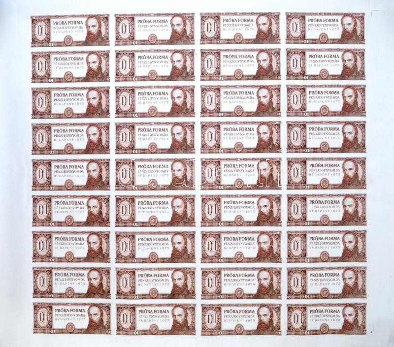 1973. Táncsics 01 "PRÓBA FORMA" előlap kész, hátlap üres, barna nyomat, zöld papír, 36db-os teljes ívben T:I- feltekert, hajtatlan / Hungary 1973. Táncsics 01 "PRÓBA FORMA" unissued banknote design, front proof, backside empty, brown print on green paper, in sheet of 36 C:AU rolled up, unfolded Adamo SFT2.2.5
