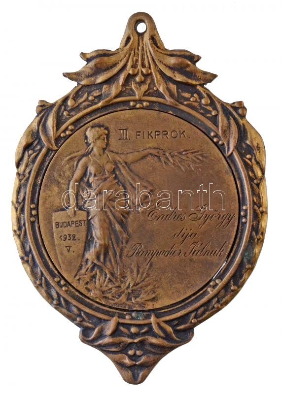 1932. "Budapest 1932. V. - III. FIKPROK (A Filatéliai Kurir-Propaganda Kiállítása) - Endres György díja Rampacher Pálnak" aranyozott Br díjérem (65x93mm) T:2 kis folt / Hungary 1932. " Budapest V. 1932. - III. FIKPROK (The 3rd Exhibition of the Kurir-Propaganda Philately) - Award of György Endres to Pál Rampacher" Br commemorative medallion (65x93mm) C:XF small spot