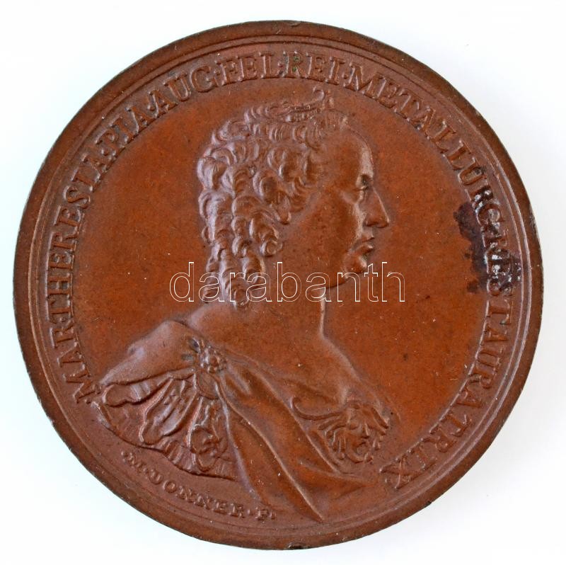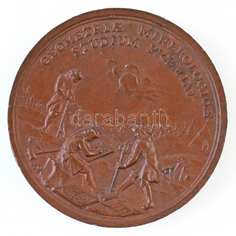 Matthias Donner (1704-1756) A Selmecbányai Bányászati Akadémia bányamérési tanulmány jutalomérmének Br utánverete "MARIA THERESIA AUG FEL REI METALLURG RESTAURATRIX / GEOMETRIAE MINEROLOGICAE STUDIUM PRAEMIAT" (41,31g/45mm) T:1-,2 több ph. / Austrian Empire Bronze restrike of the student's award medallion of the Mining Academy of Selmecbánya for the Mining Measurement. Szign.: Matthias Donner (41,31g/45mm) C:AU,XF multiple edge error
